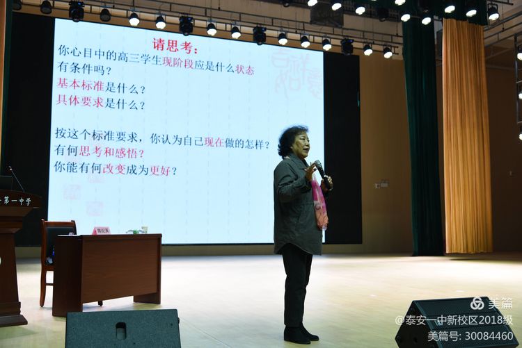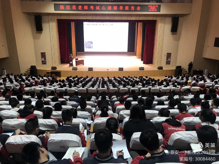 为了使同学们增强信心,拥有良好的心理素质和稳定的情绪,以最佳状态应对高考冲刺备考,泰安一中新校区2018级于424日下午在小剧场举办《调整心态,高考备考》专题讲座。本次讲座邀请了清华大学指导教师、全国心理卫生学会会员、北京市教育委员会心理健康教育指导委员会委员陈纪英老师,为即将参加高考的高三学子们进行了一次深入心灵、温暖有力的心理抚慰。