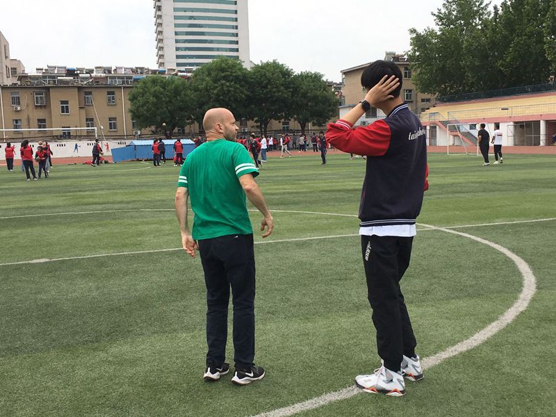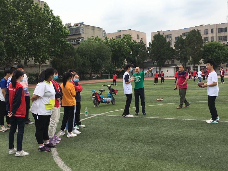 橄榄球是美国十分流行的一项体育运动,又名“美式足球”(American football,但对于中国学生来说却比较陌生。为了加深对橄榄球运动的了解,初步学习关于橄榄球运动的知识,也为了丰富中美班学生的课余生活,国际部美籍外教Constantine老师主动请缨, 担负起了教授橄榄球的任务。每逢体育课或课余时间,Constantine老师便组织2019级中美班学生到学校操场学习有关橄榄球的基本知识、基本战术以及注意事项等,学生从一脸茫然、一招一式到逐步了解,再到熟练掌握,最后进入实战阶段,收获颇丰。